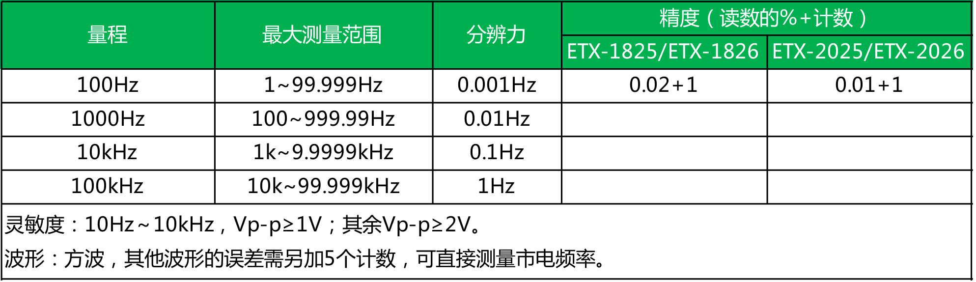 ● ETX-2025/2026型 精度为0.02%;ETX-1825/1826型 精度为0.05%;