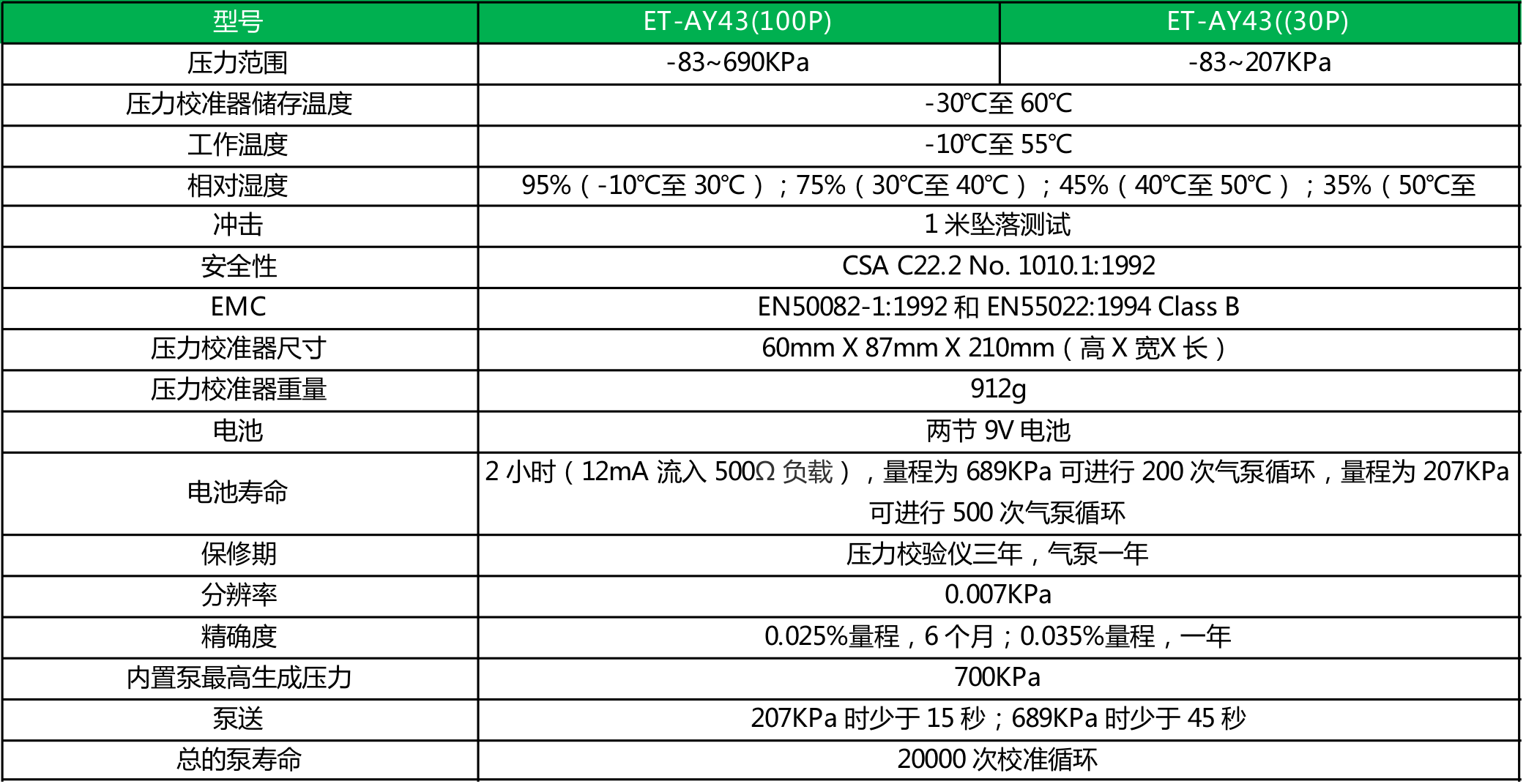 ● 压力量程:-83~690KPa(100P),-83~207KPa(30P)